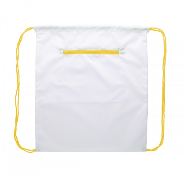 Geantă personalizată cu șnur cu fermoar, buzunar frontal protejat RFID, poliester 190T. Cu grafică imprimată prin sublimare. MOQ: 25 buc.