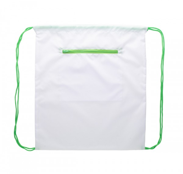 Geantă personalizată cu șnur cu fermoar, buzunar frontal protejat RFID, poliester 190T. Cu grafică imprimată prin sublimare. MOQ: 25 buc.