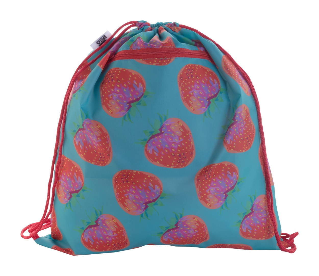 Geantă personalizată cu șnur cu fermoar, buzunar frontal protejat RFID, poliester 190T RPET. Cu grafică imprimată prin sublimare și etichetă RPET distinctivă. MOQ: 25 buc.