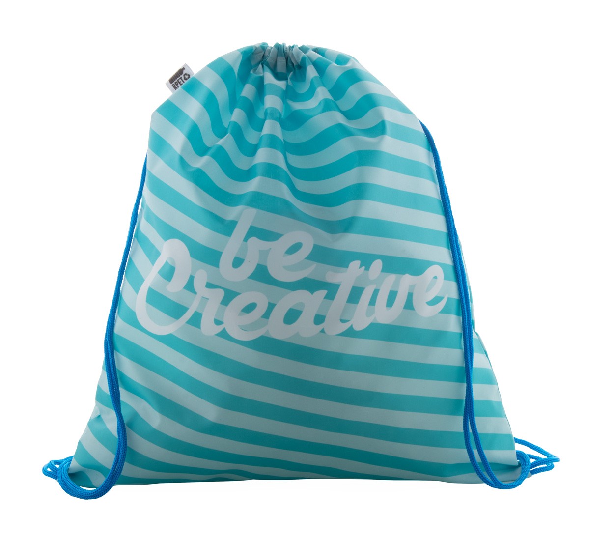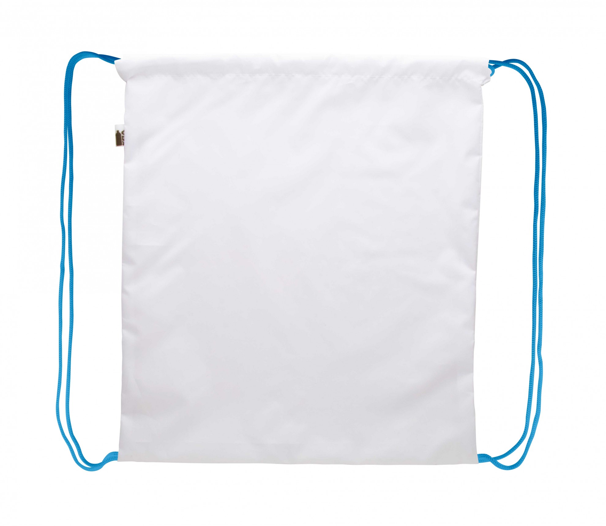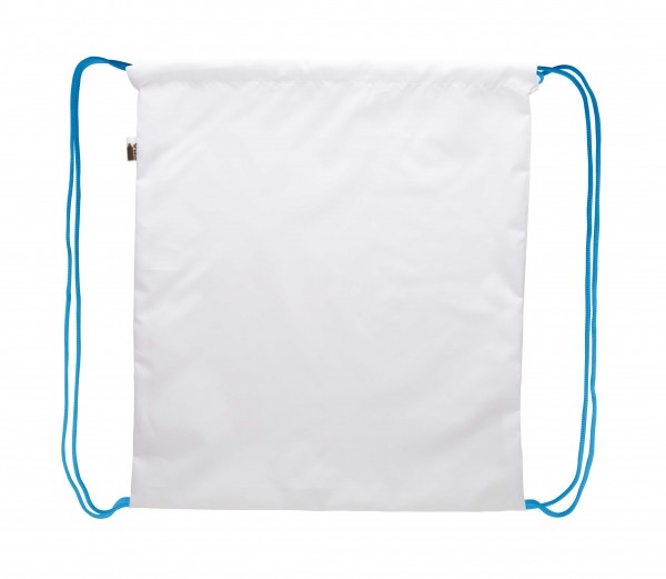 Rucsac drawstring personalizat, cu snur colorat, din poliester RPET 190T. Cu sublimare pe toata suprafata. Cu etichetă distinctă RPET. Cantitate minima de comanda 25 buc.