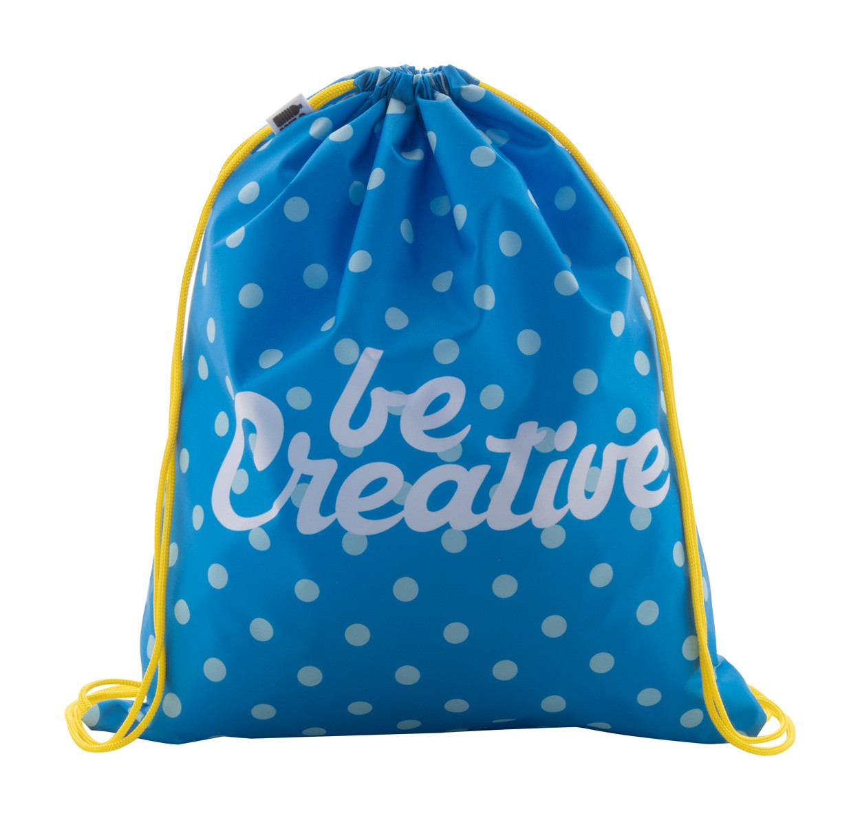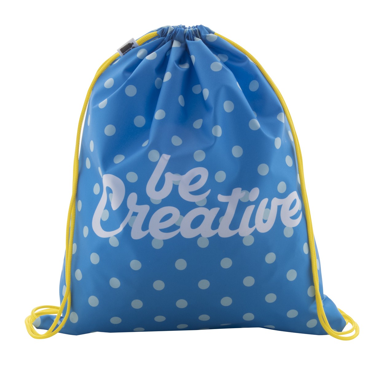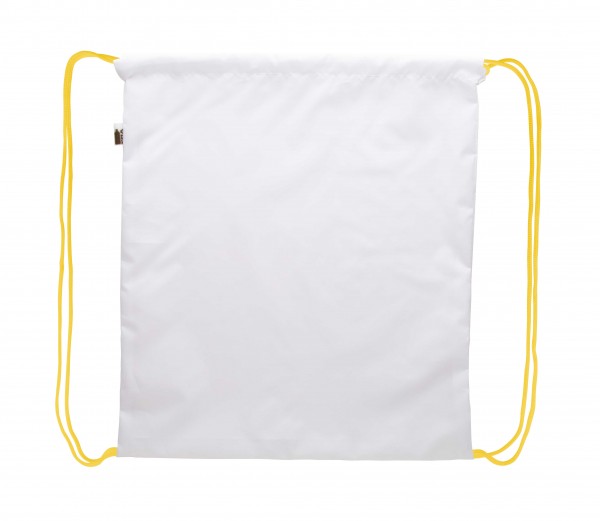 Rucsac drawstring personalizat, cu snur colorat, din poliester RPET 190T. Cu sublimare pe toata suprafata. Cu etichetă distinctă RPET. Cantitate minima de comanda 25 buc.