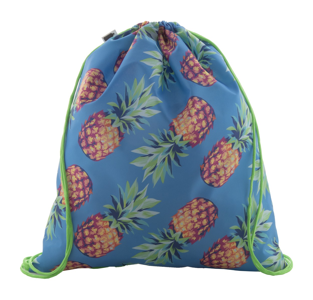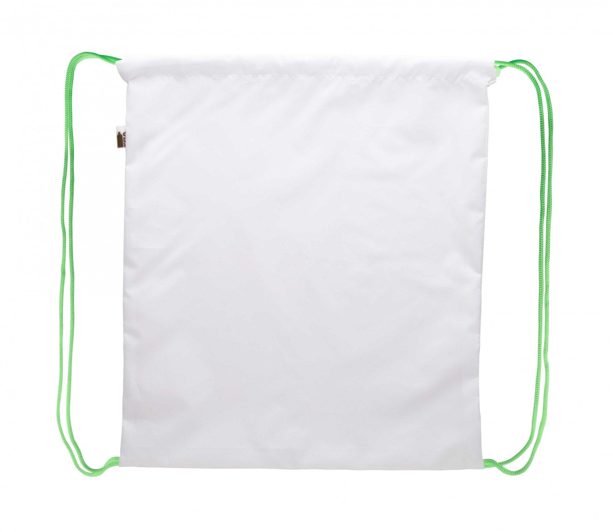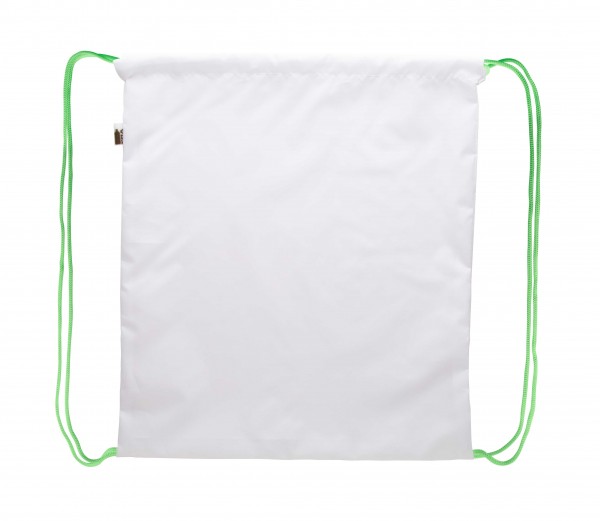 Rucsac drawstring personalizat, cu snur colorat, din poliester RPET 190T. Cu sublimare pe toata suprafata. Cu etichetă distinctă RPET. Cantitate minima de comanda 25 buc.
