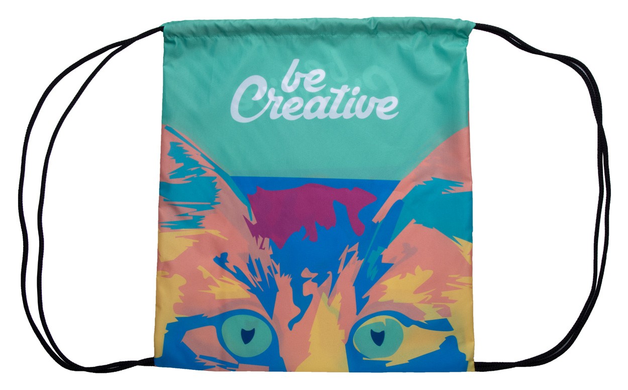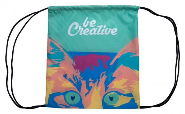 Rucsac personalizat cu șnur colorat, din poliester 190T. Prețul include sublimarea. Cantitate minimă de comandă: 25 buc.