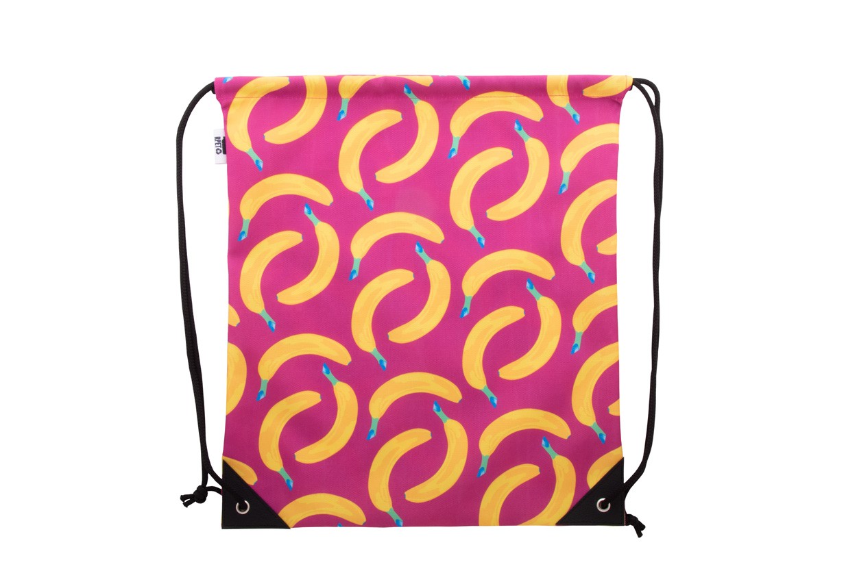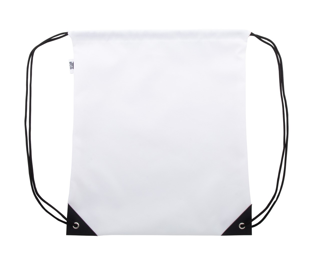 Rucsac cu șnur, realizat la comandă, din poliester 600D RPET, cu colțuri din piele PU întărită și șnururi groase de culoare asortată. Cu grafică imprimată prin sublimare și etichetă RPET distinctivă. MOQ: 25 buc.
