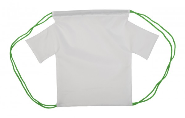 Rucsac cu șnur, în formă de tricou, realizată la comandă, pentru copii, cu șnur colorat, poliester 190T. Cu grafică imprimată prin sublimare. MOQ: 25 buc.