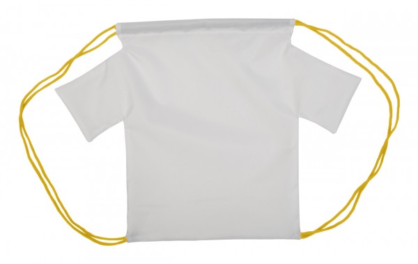 Rucsac personalizat, cu șnur, în formă de tricou, din poliester 190T. Cu grafică imprimată prin sublimare. MOQ: 25 buc.