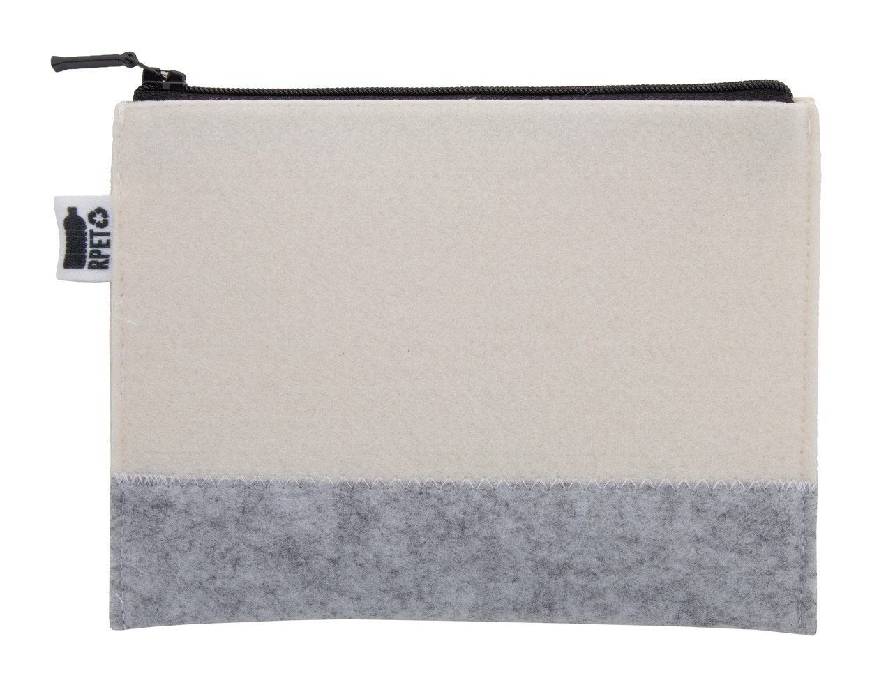 Geantă cosmetică personalizată, cu fermoar, din pâslă RPET, cu grafică imprimată prin sublimare. Cu etichetă distinctivă RPET. MOQ: 50 buc.