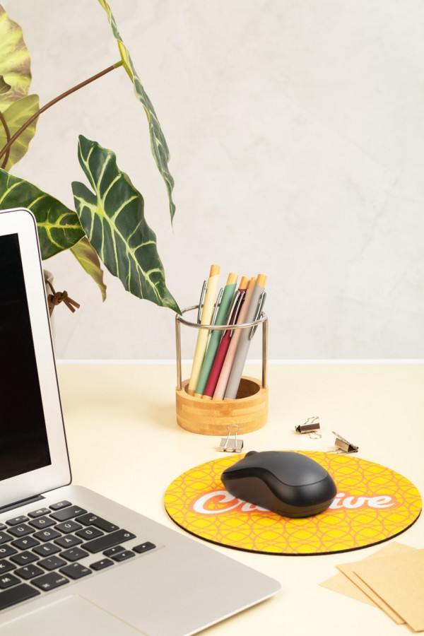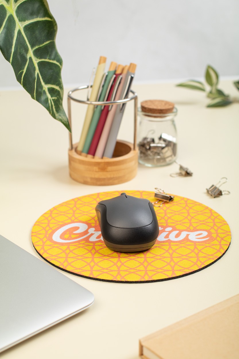 Mousepad din pâslă RPET, realizat la comandă, cu bază anti-alunecare din cauciuc. Prețul include imprimarea prin sublimare. MOQ: 50 buc.