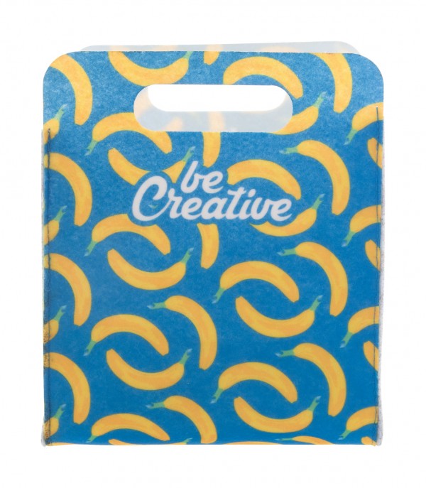 Organizator de birou din pâslă RPET, realizat la comandă, cu grafică imprimată color. Cu mânere tăiate și etichetă distinctivă RPET. Pretul include imprimarea prin sublimare. MOQ: 50 buc.