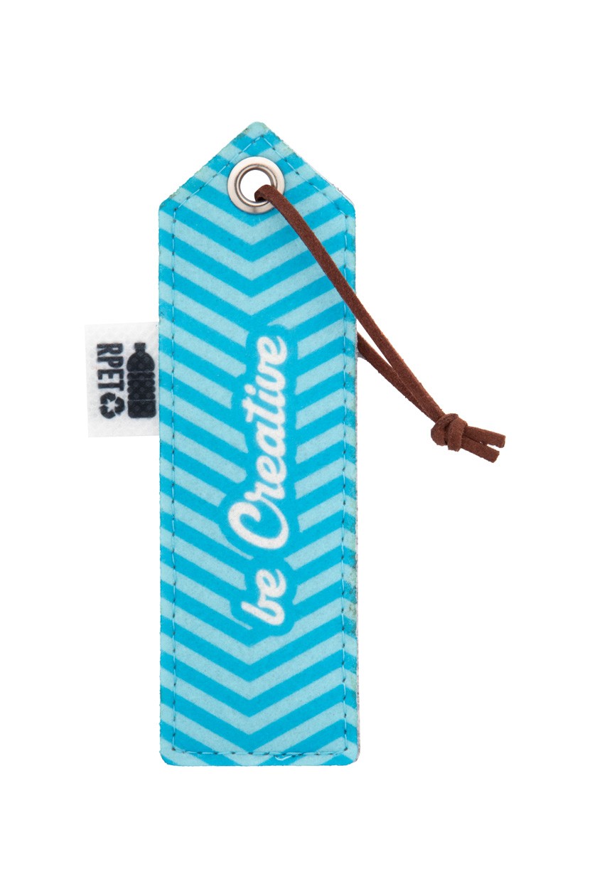 Semn de carte din pâslă RPET, realizat la comandă, cu partea din față imprimată color și șnur din piele PU. Cu etichetă distinctivă RPET. Pretul include imprimarea prin sublimare. MOQ: 100 buc.
