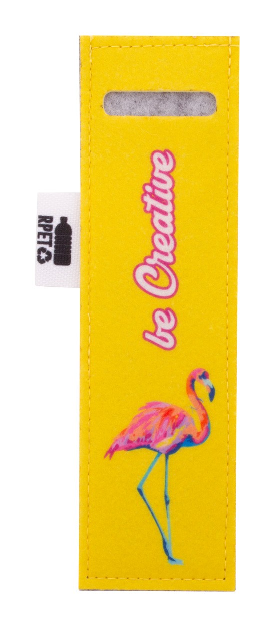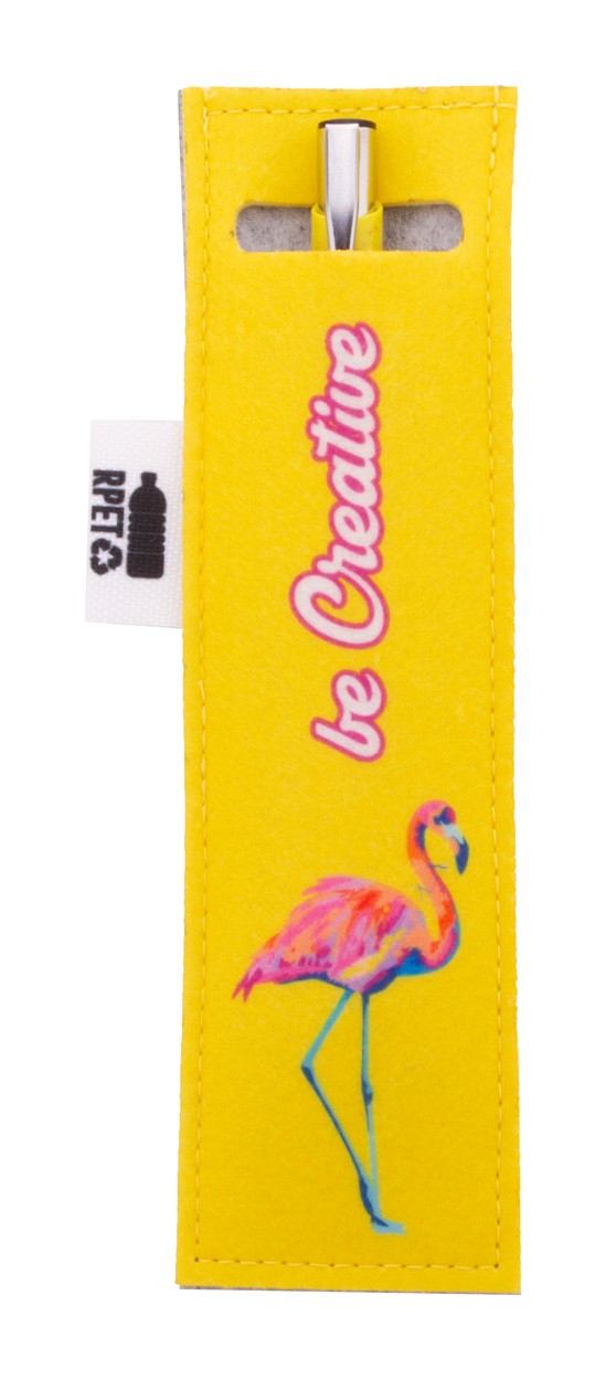 Husă pentru stilou RPET, realizată la comandă, cu partea frontală imprimată color. Cu etichetă distinctivă RPET. Prețul include imprimarea prin sublimare. MOQ: 50 buc.