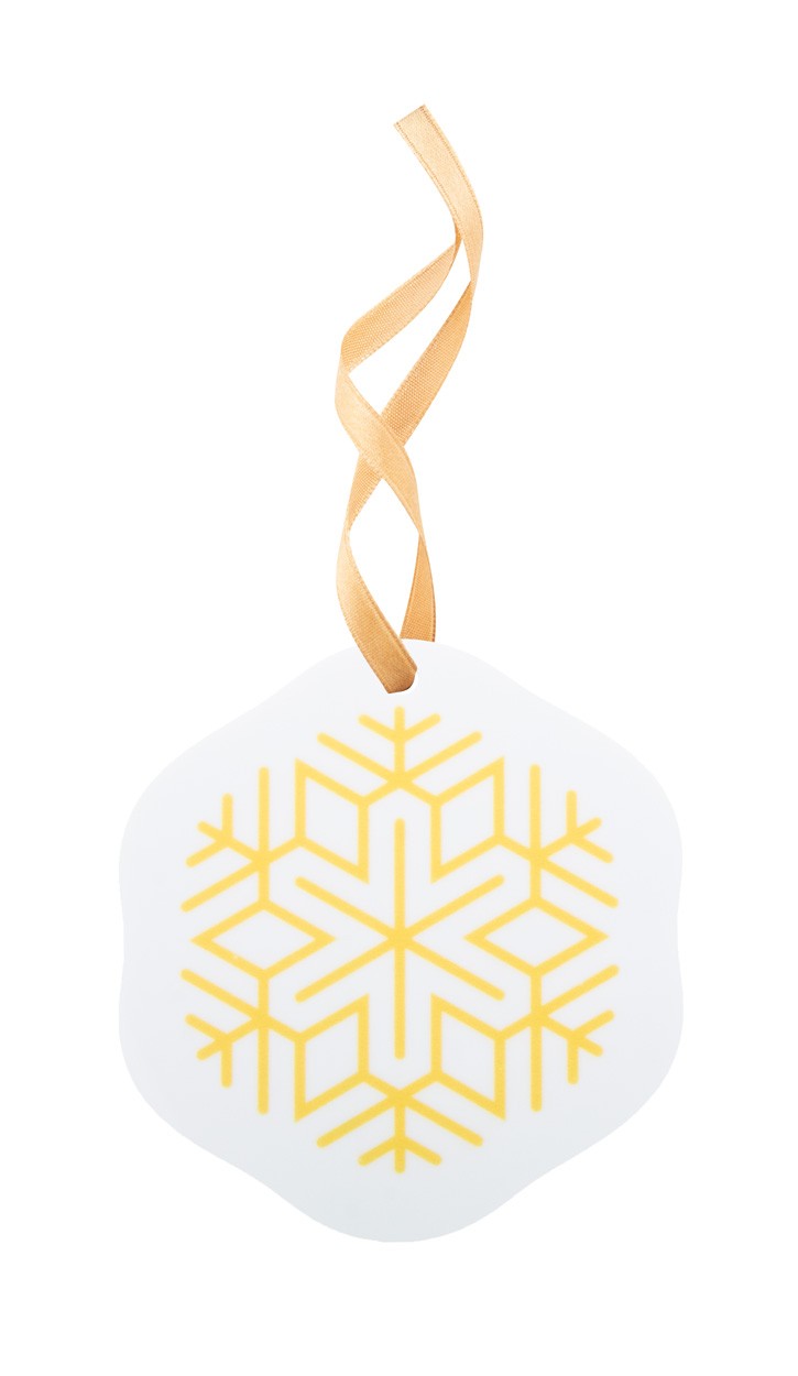 Ornament pentru brad de Crăciun, realizat la comandă din acril, cu formă personalizată și grafică plină de culoare. Dimensiune maximă: 80x80 mm. Pretul include imprimarea UV LED pe o parte. Livrat cu panglică detașată. MOQ: 100 buc.