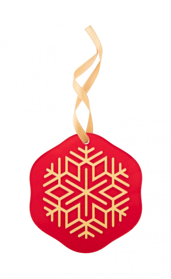 Ornament pentru brad de Crăciun, realizat la comandă din acril, cu formă personalizată și grafică plină de culoare. Dimensiune maximă: 80x80 mm. Pretul include imprimarea UV LED pe o parte. Livrat cu panglică detașată. MOQ: 100 buc.