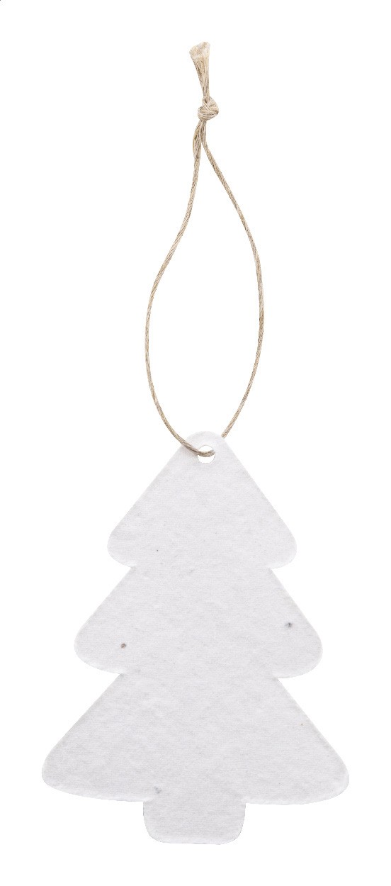 Ornament de Crăciun pentru brad, realizat la comandă, imprimat color, din hârtie cu semințe și sfoară de in. Prețul include imprimarea digitală pe o parte. Cu semințe asortate de flori sălbatice. MOQ: 100 buc.
