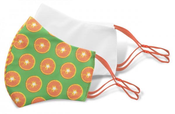 Masca personalizata pentru adulti, cu doua straturi, lavabila si reutilizabila, cu elastice reglabile. Din 100% poliester (140gr / m2) si 100% bumbac (140 gr / m²). Pretul include sublimarea. Cantitatea minima de comanda este de 50 buc.