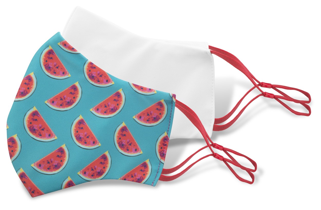 Masca personalizata pentru adulti, cu doua straturi, lavabila si reutilizabila, cu elastice reglabile. Din 100% poliester (140gr / m2) si 100% bumbac (140 gr / m²). Pretul include sublimarea. Cantitatea minima de comanda este de 50 buc.