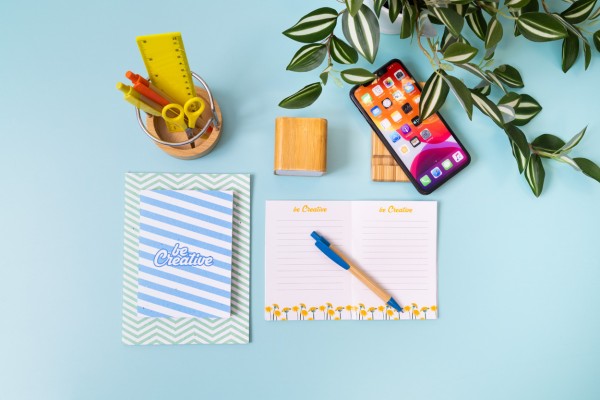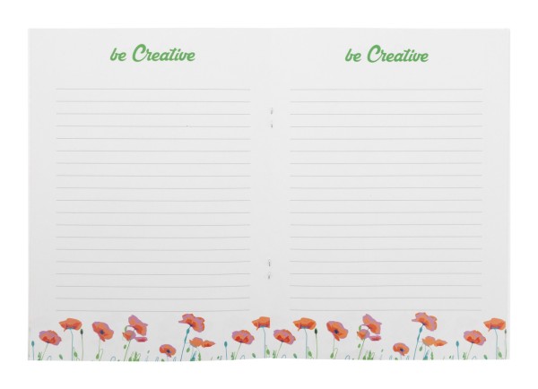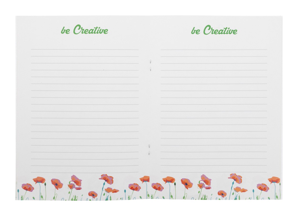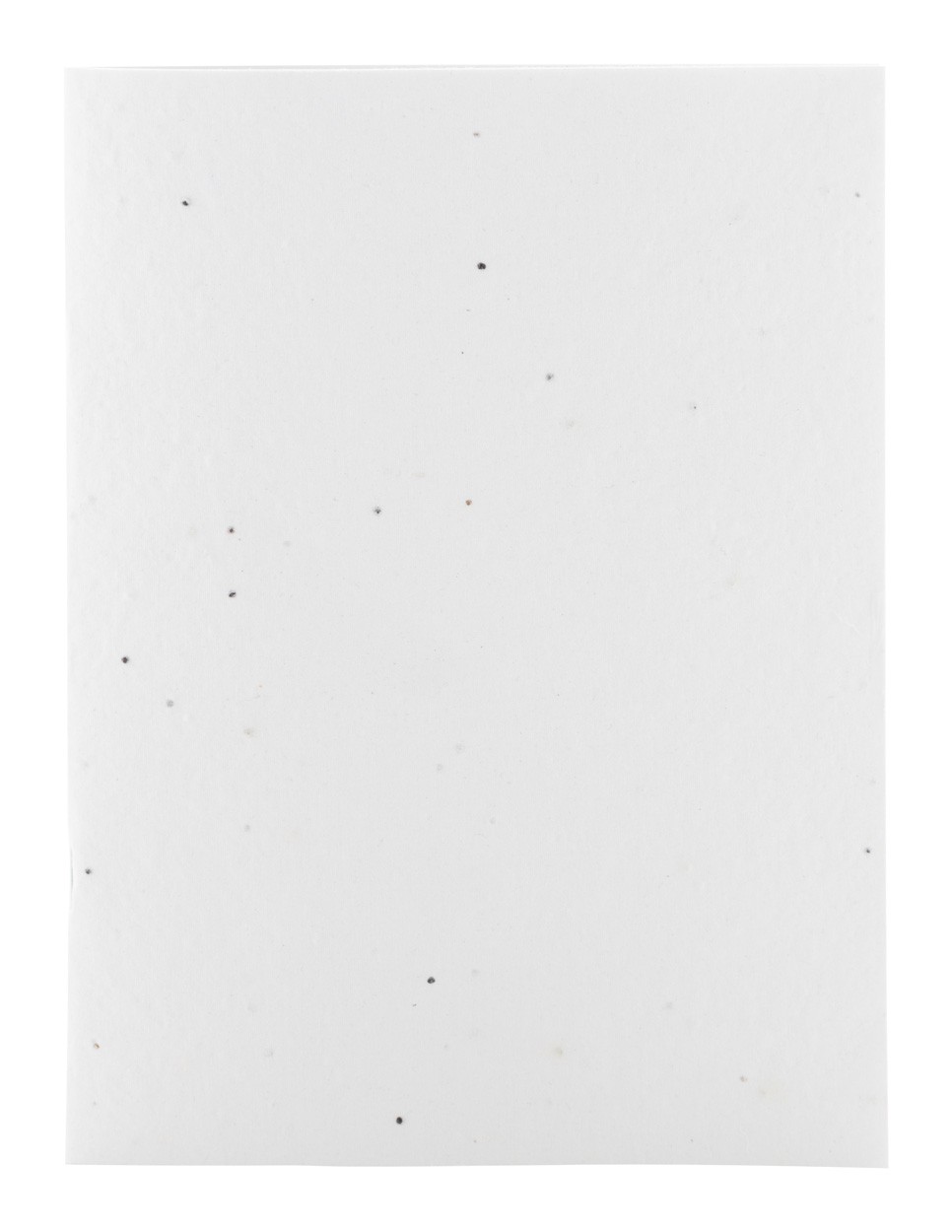 Caiet personalizat, acoperit cu hârtie de semințe, cu 32 de coli de hârtie reciclată, format A5. Prețul include coperta exterioară imprimată color și o imprimare color identică pe toate paginile interioare. MOQ: 100 buc. Cu semințe de flori sălbatice asortate.