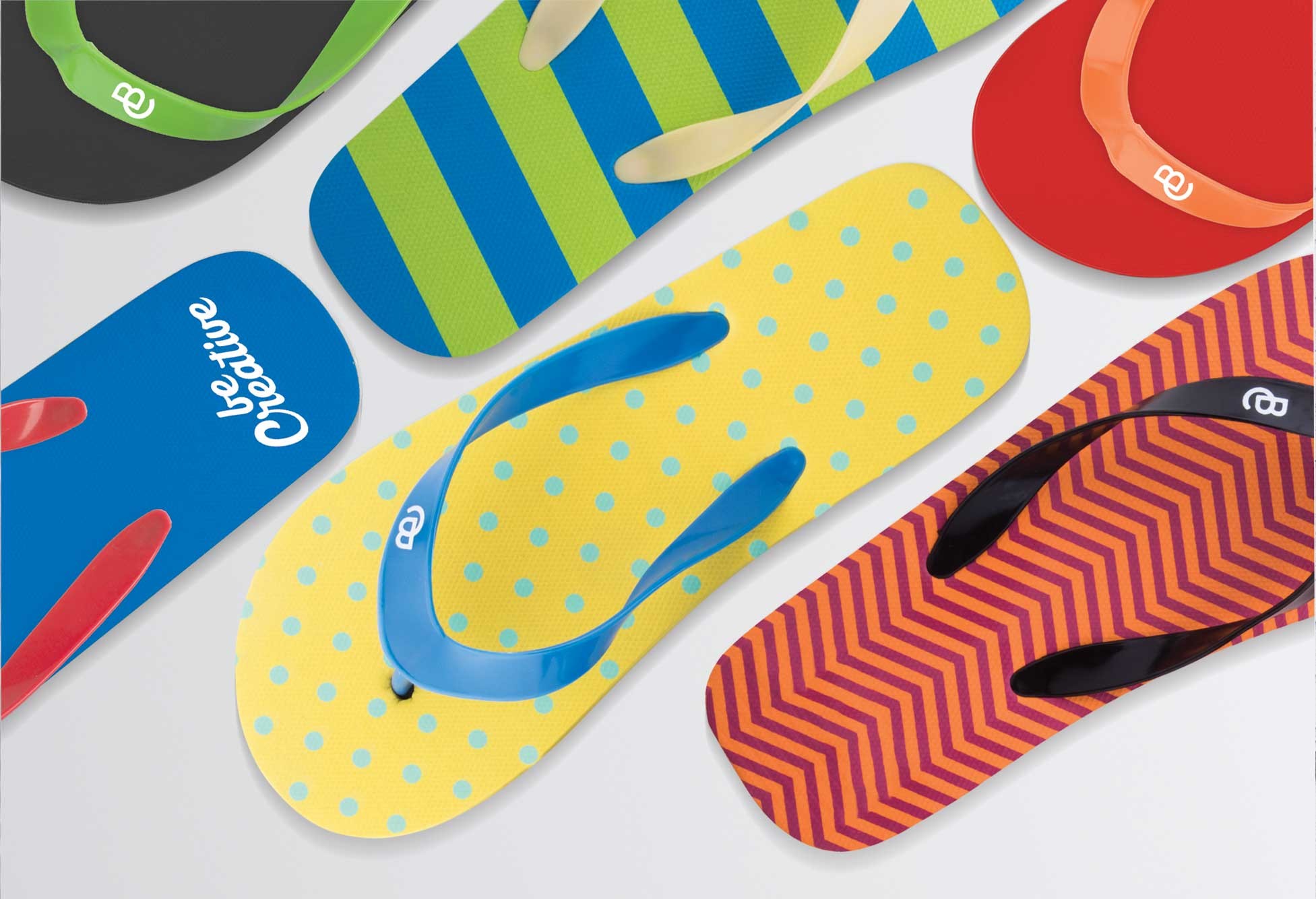 Papuci personalizați, talpă din PE și bretele din PVC. (culorile pot fi combinate). Cantitate minimă de comandă 50 perechi/combinație.