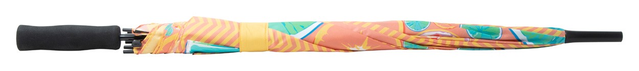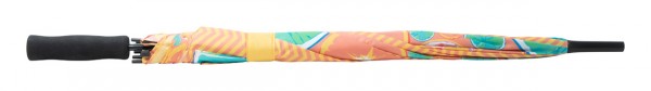 Umbrelă automată personalizată cu 8 panele cu ax metalic, spițe din fibră de sticlă și mâner EVA. 190T pongee. Cu sublimare pe fiecare panel. Cantitate minimă de comandă: 50 buc.