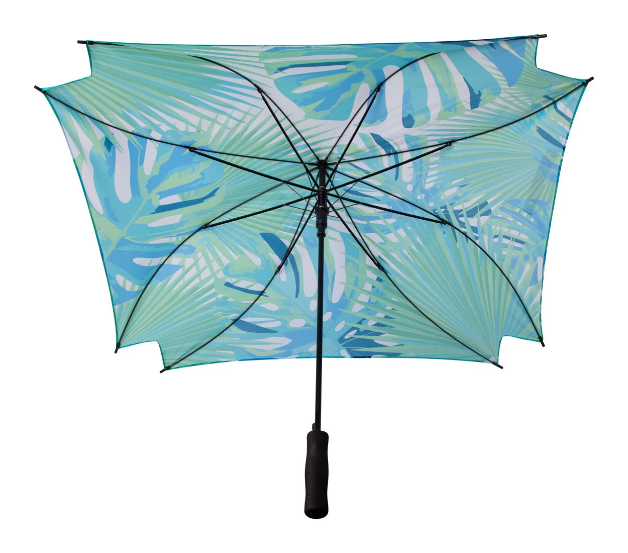 Umbrelă automată pătrată,personalizată prin sublimare, cu cadru metalic, spițe din fibră de sticlă și mâner din EVA. Pongee 190T. Cantitate minimă de comandă: 50 buc.