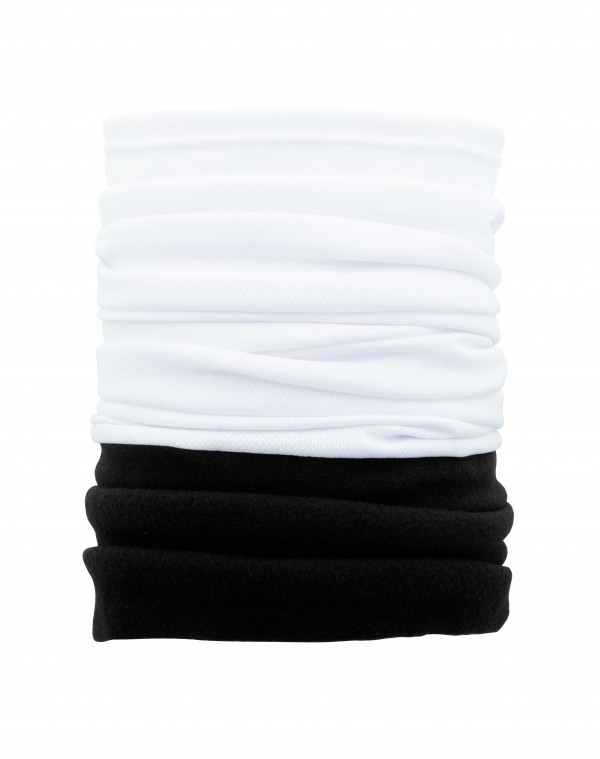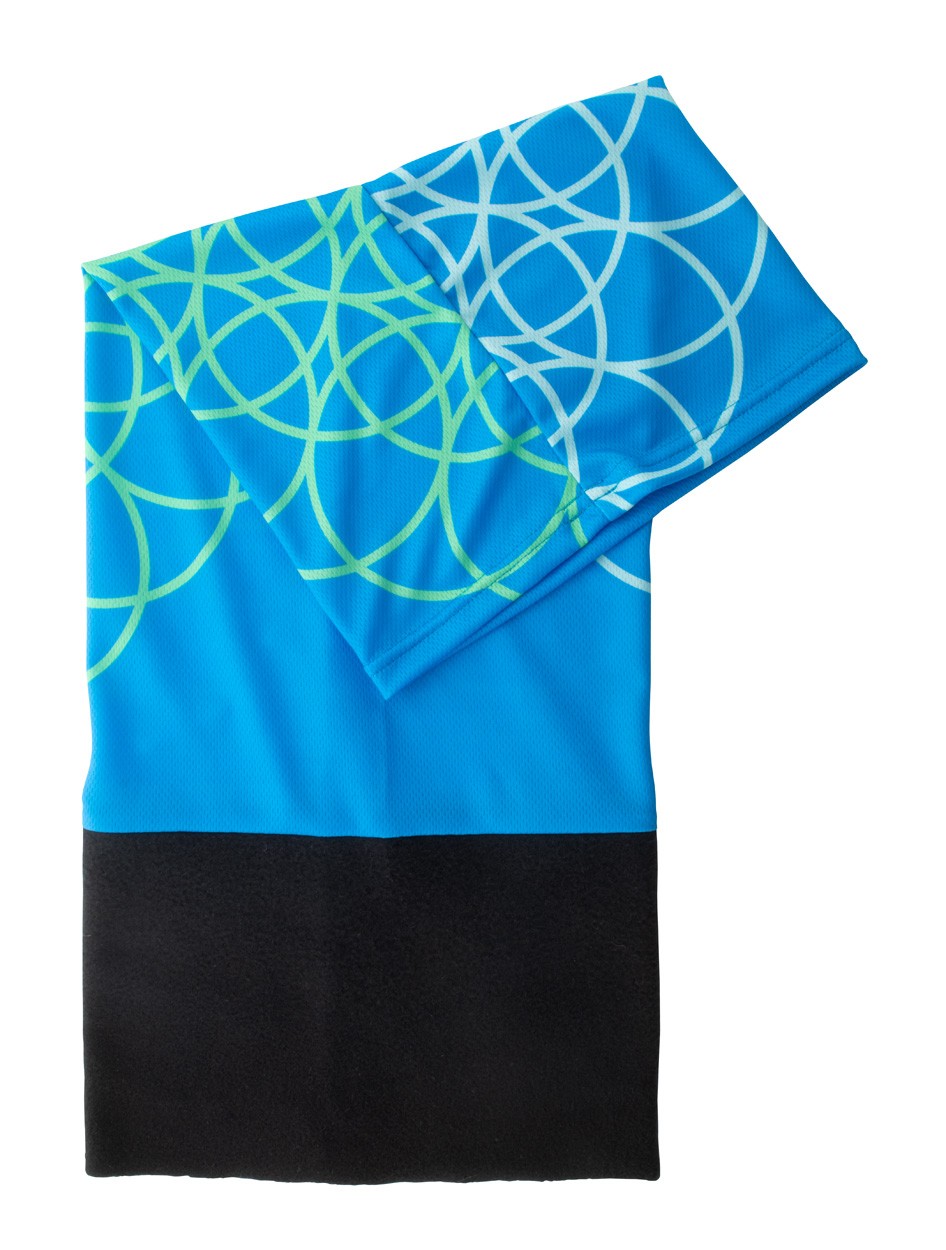 Eșarfă multifuncțională personalizată, din poliester respirabil și cu uscare rapidă, cu încălzitor de gât din polar colorat. Cu grafică imprimată pe toată suprafața pe partea din poliester. Fabricat din țesături 100% poliester (135 g / m²) și lână polară (160 g / m²). MOQ: 100 buc.