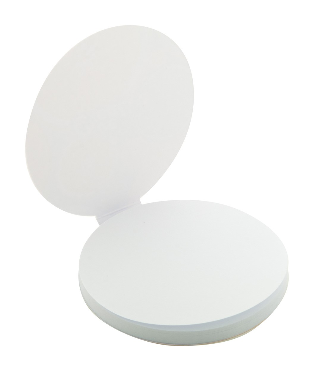 Bloc de note adezive, în formă rotundă, realizat la comandă, acoperit cu hârtie. Include 50 de coli din hârtie reciclată. Pretul include coperta exterior imprimată color. MOQ: 100 buc.