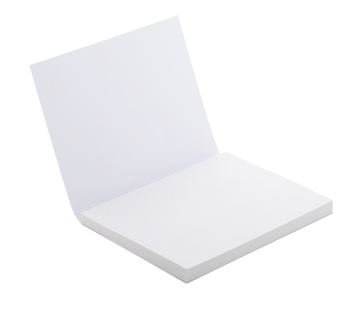 Carnețel de note adezive personalizat, acoperit cu hârtie. Include 50 de note adezive din hârtie reciclată (100x75 mm). Prețul include coperta exterior imprimată color. MOQ: 100 buc.