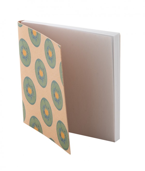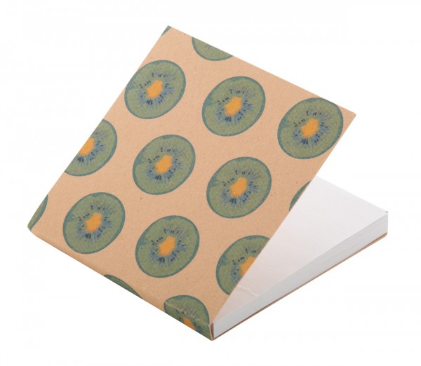 Carnețel de note adezive, personalizat, reciclat, acoperit cu hârtie kraft. Include 50 de coli de note adezive din hârtie reciclată (75x75 mm). Prețul include coperta exterior imprimată color. MOQ: 100 buc.