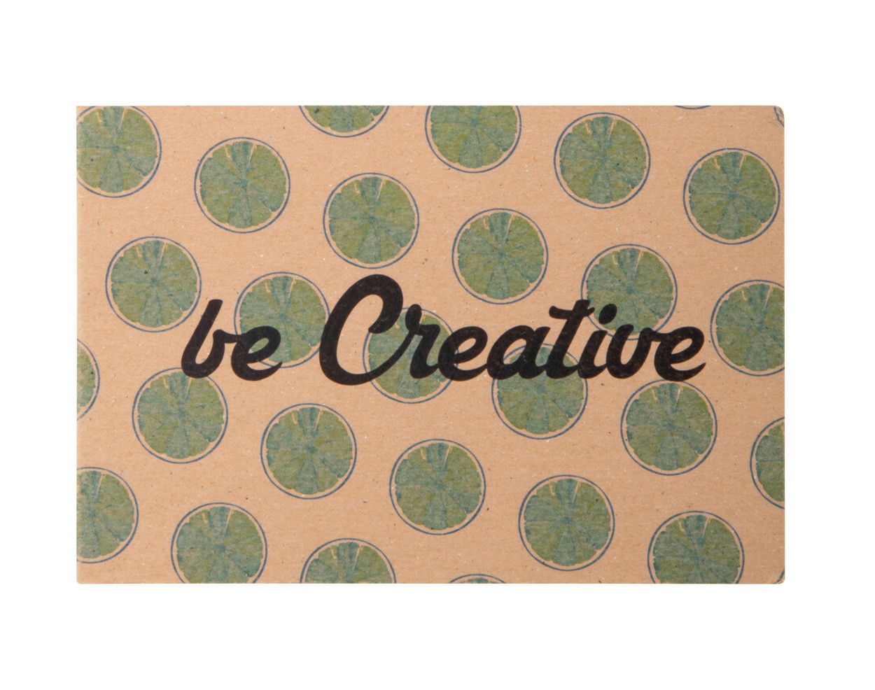 Marcatoare de pagină, acoperite cu hârtie kraft, la comandă, reciclată. Include 100 de marcatoare de pagină din folie de plastic în 5 culori asortate (44x12 mm). Prețul include coperta exterior imprimată color. MOQ: 100 buc.