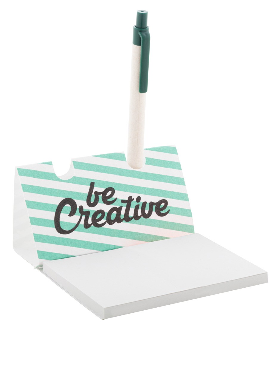 Suport pentru pix, din hârtie cu semințe, realizat la comandă, cu note adezive. Include 50 de note adezive (100×75 mm) hârtie reciclată. Prețul include imprimarea color pe partea de sus. MOQ: 100 buc. Cu semințe de flori sălbatice.