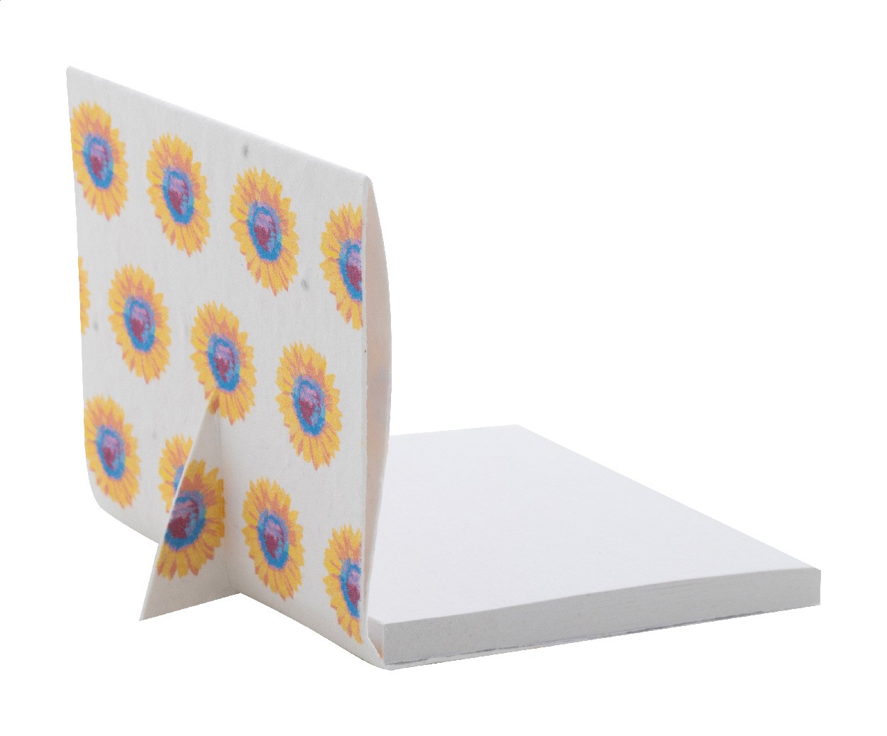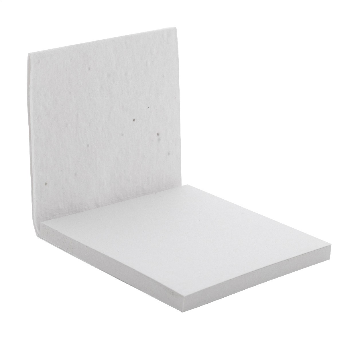 Dispenser de notițe autoadezive, din hârtie reciclată, cu semințe, realizat la comandă, cu antet vertical. Include 50 de note autoadezive din hârtie reciclată (75×75 mm). Prețul include imprimare color pe suport. MOQ: 100 buc. Cu semințe asortate de flori sălbatice.