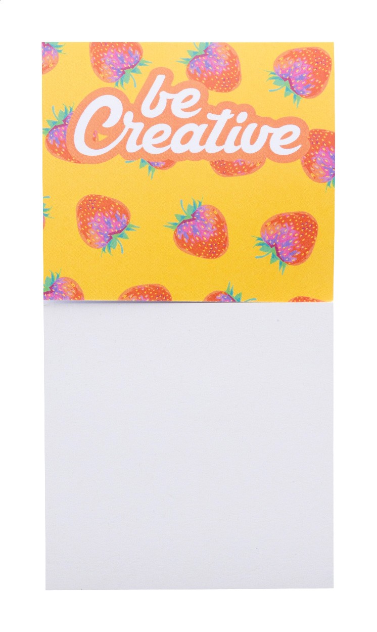 Dispenser de notițe autoadezive din hârtie reciclată, realizat la comandă, cu antet vertical. Include 50 de note autoadezive din hârtie reciclată (75×75 mm). Prețul include imprimarea color pe suport. MOQ: 100 buc.
