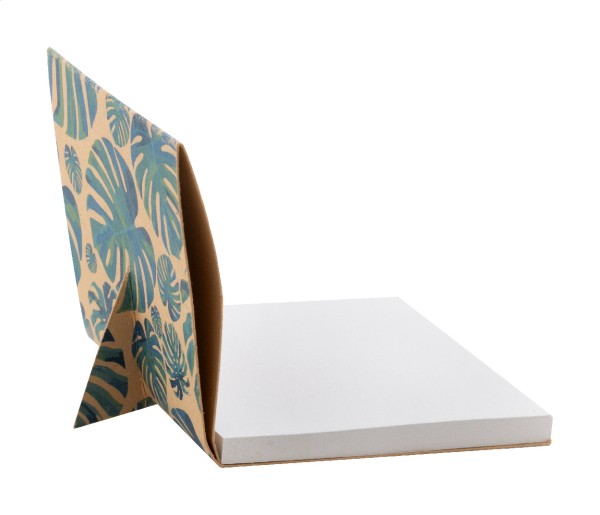 Dispenser de notițe autoadezive din hârtie kraft reciclată, realizat la comandă, cu antet vertical. Include 50 de coli de bilețele autoadezive din hârtie reciclată (75×75 mm). Prețul include imprimarea color pe suport. MOQ: 100 buc.