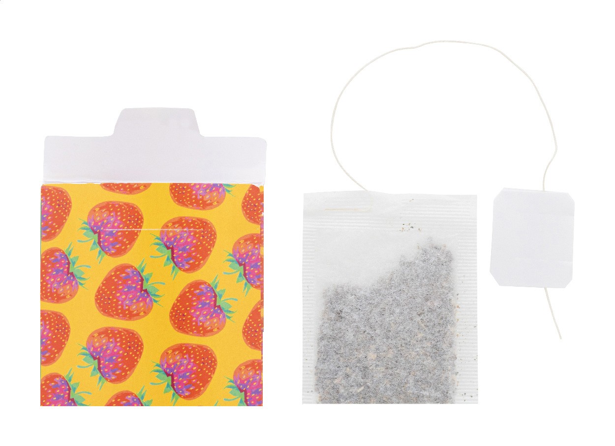 Pliculeț de ceai, ambalat individual, într-o husă de hârtie personalizată, imprimată color. Conține 1,2 grame (1 pliculeț) de ceai. MOQ: 100 buc.