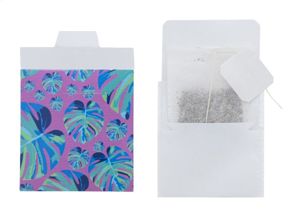 Pliculeț de ceai, ambalat individual, într-o husă de hârtie personalizată, imprimată color. Conține 1,2 grame (1 pliculeț) de ceai. MOQ: 100 buc.