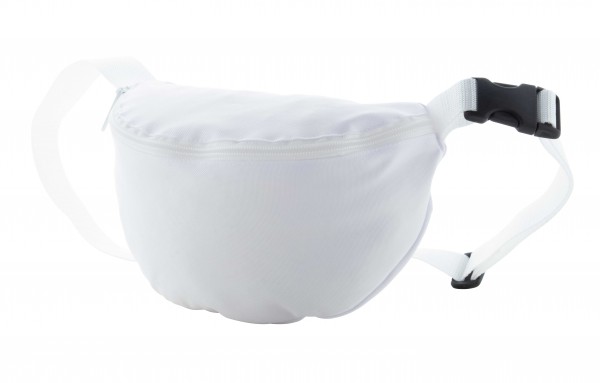 Geantă de talie personalizată, cu compartiment cu fermoar, poliester 600D RPET. Cu etichetă RPET distinctivă cu nisip grafic imprimat prin sublimare. MOQ: 25 buc.