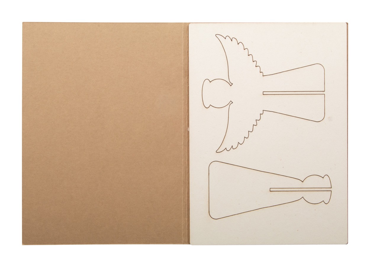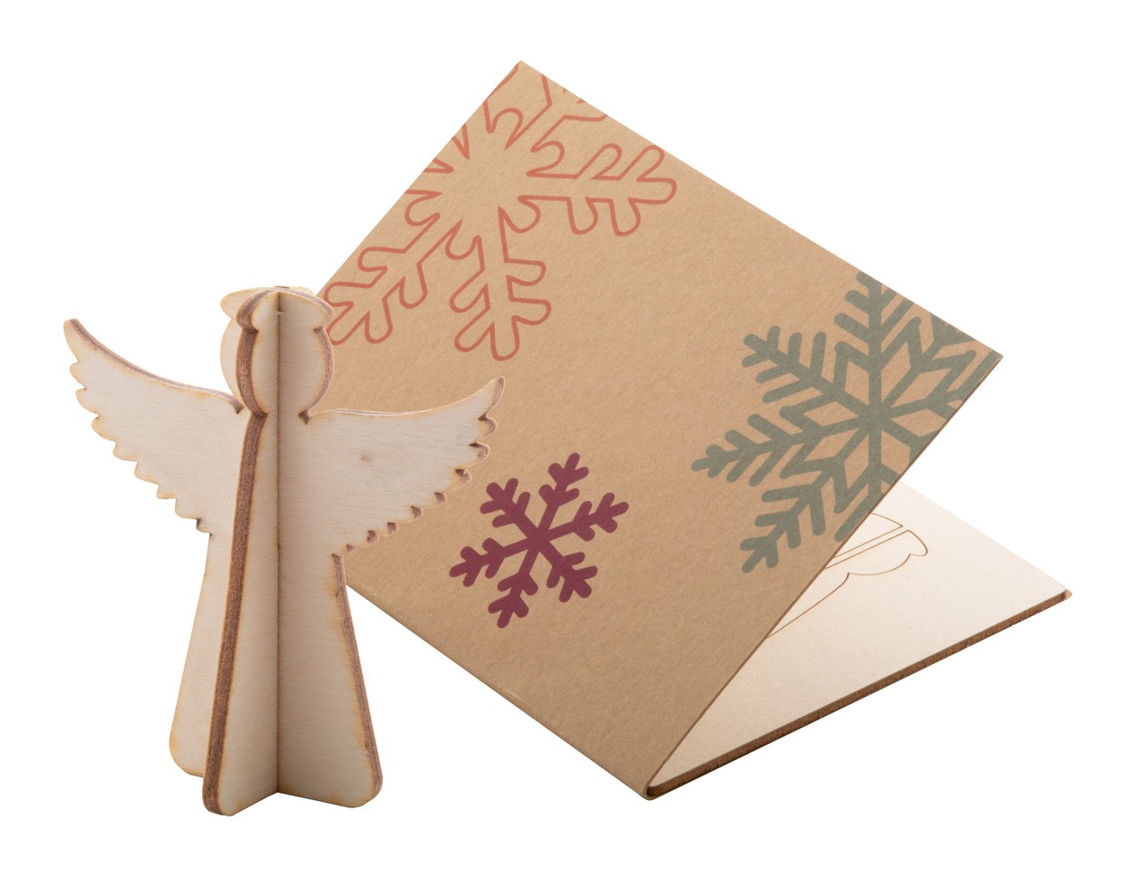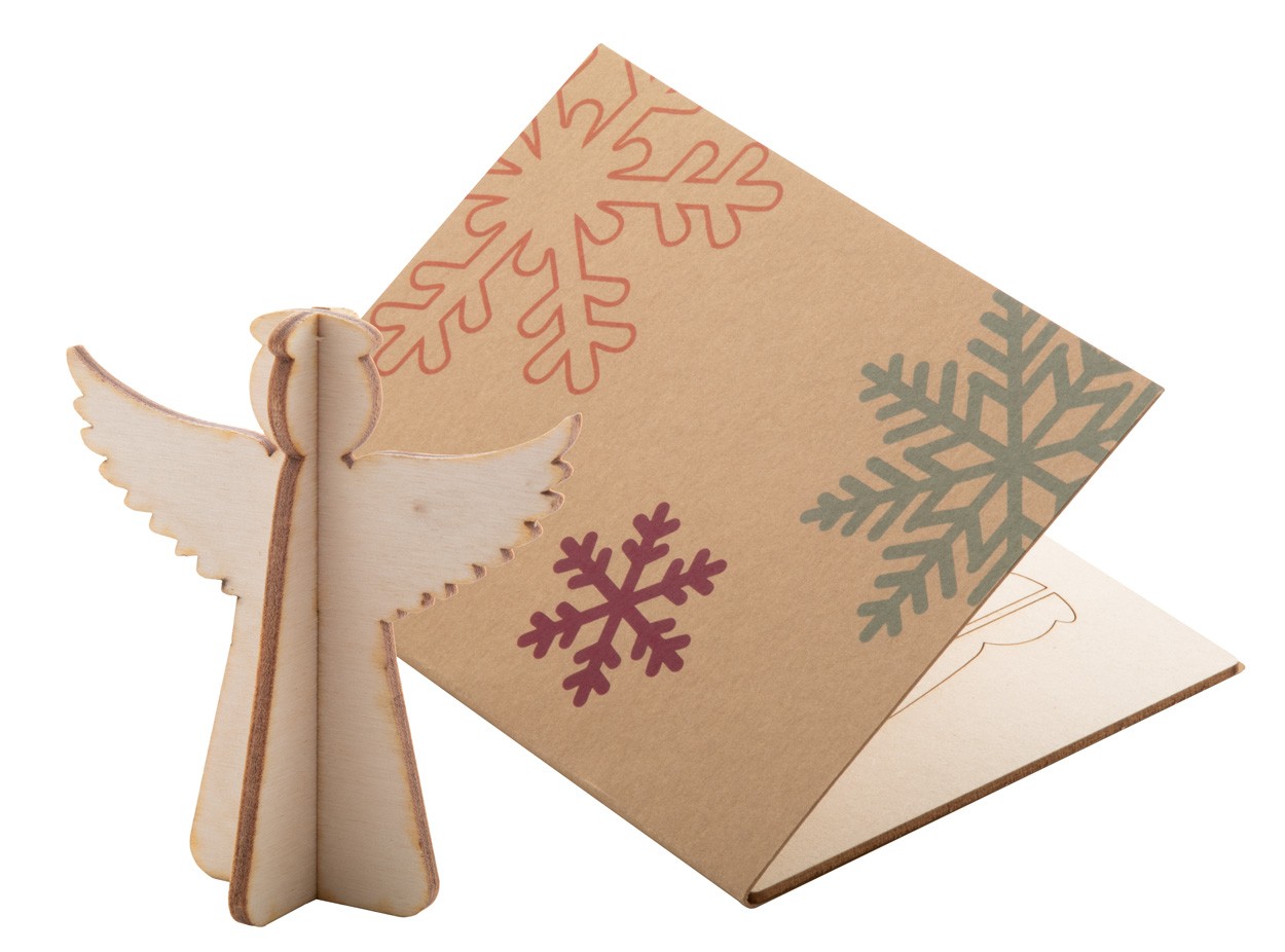Felicitare de Craciun din hartie kraft si placa din fibra de lemn, cu personalizare pe ambele fete, cu ornament puzzle de Craciun. Plic C6 inclus. Cantitate minima de comanda 100 buc.