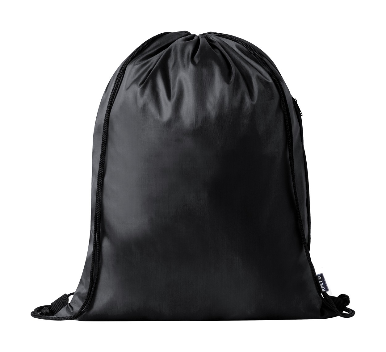 Rucsac RPET cu șnur, cu buzunar lateral cu fermoar, poliester 210T RPET cu etichetă distinctivă RPET.