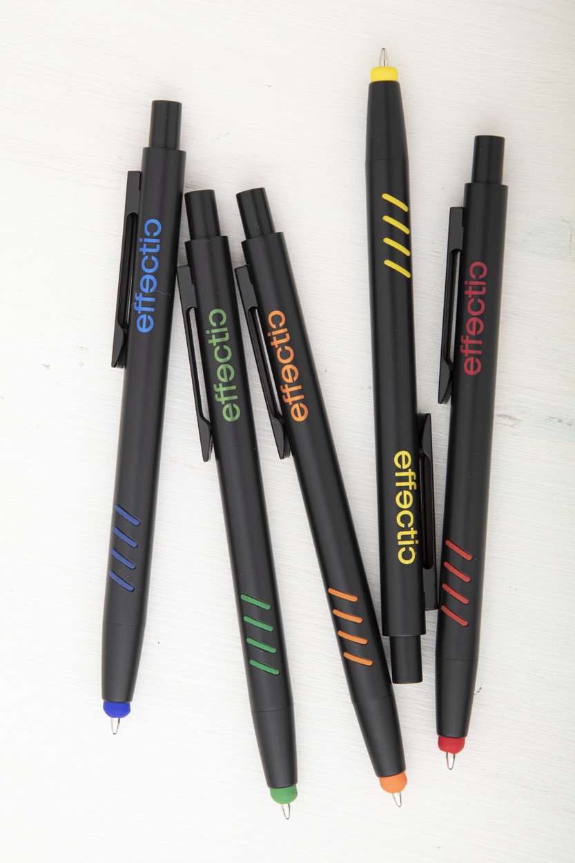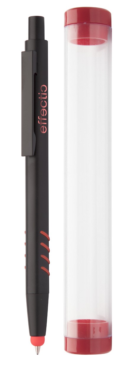Pix touch din aluminiu cu grip și vârf din cauciuc colorat. Cu finisaj special pentru gravură colorată. În etui din plastic. Mină albastră.
