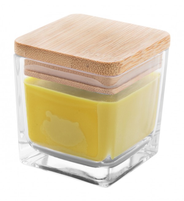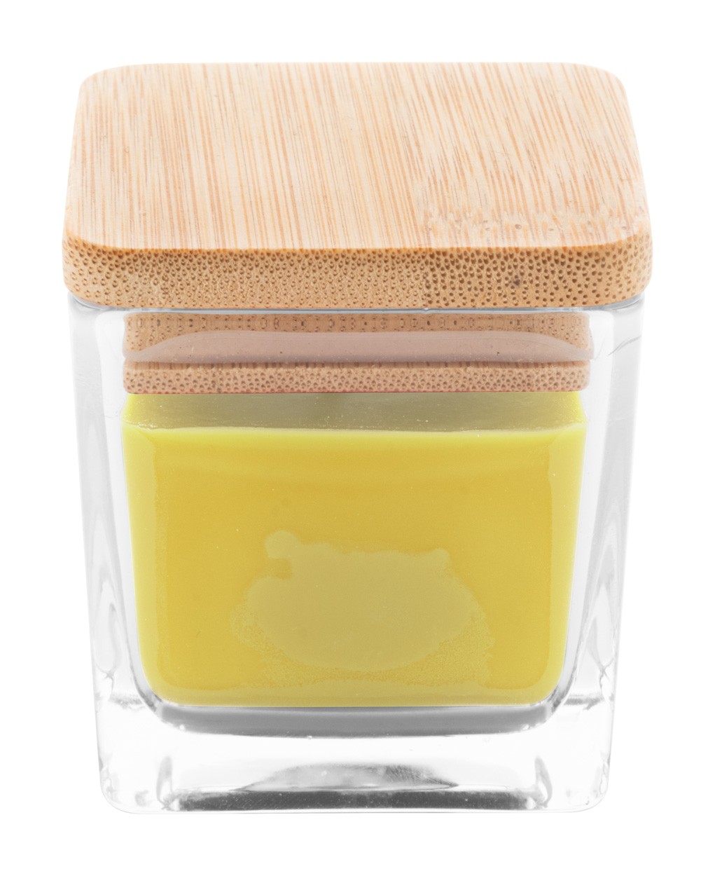 Lumânare de ceară parfumată, pe bază de plante, în suport de sticlă cu capac din bambus. Cu 50 de grame de ceară. Timp de ardere: 8 ore. În cutie de hârtie kraft.