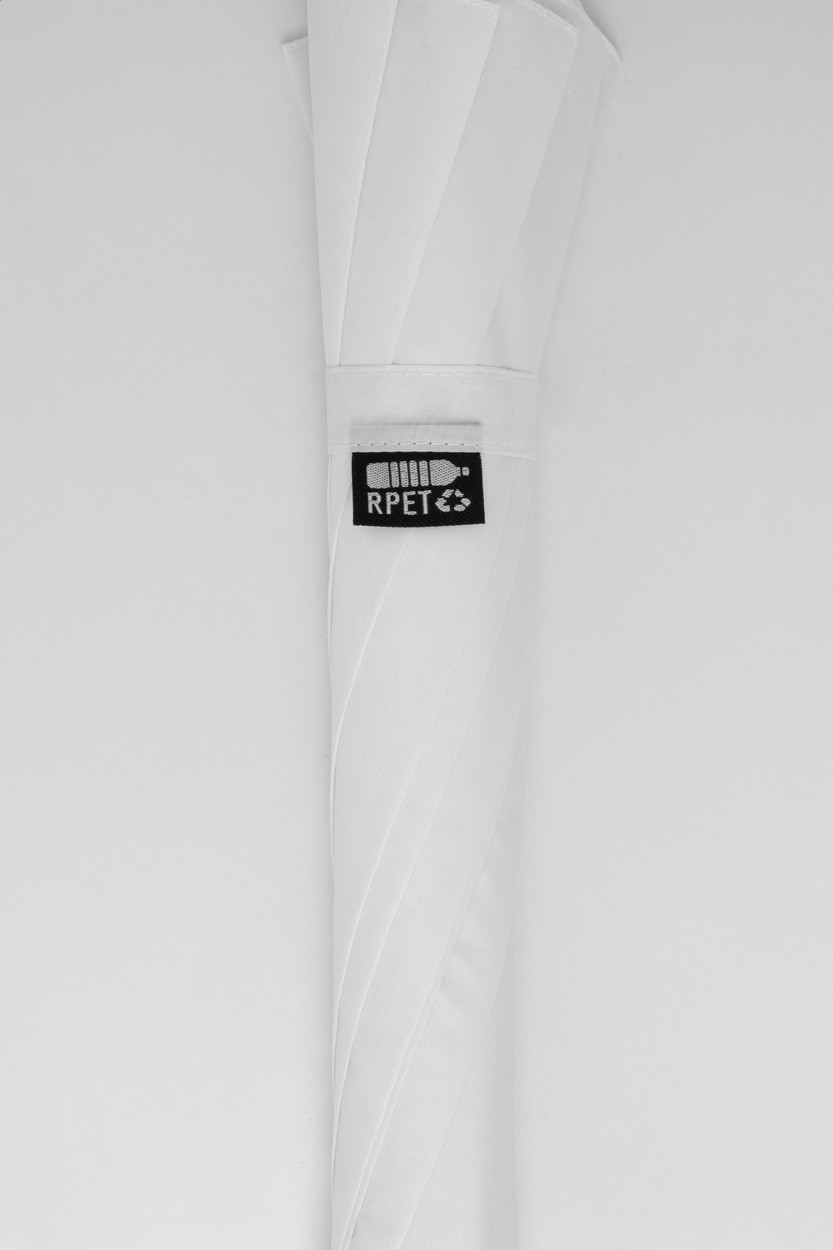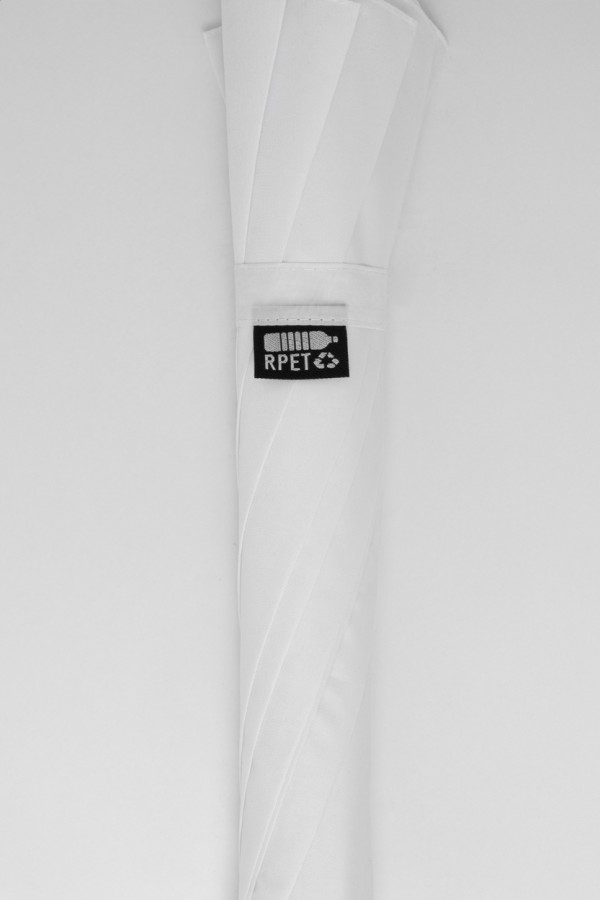 Umbrelă automată, rezistentă la vânt, cu 8 panouri, cadru din fibră de sticlă, ax metalic și mâner curbat ABS. Pongee 190T RPET. Cu etichetă distinctivă RPET.