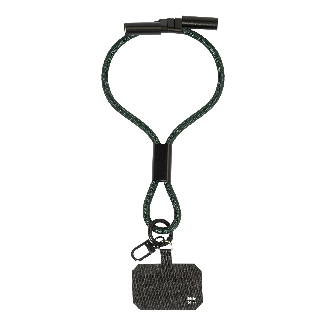 Brățară RPET, pentru telefon mobil ,cu inserție pentru telefon, carabină și cablu de încărcare USB-C la USB-C integrat cu conectori ascunși. Suportă încărcare rapidă PD de 60 W și transfer de date.