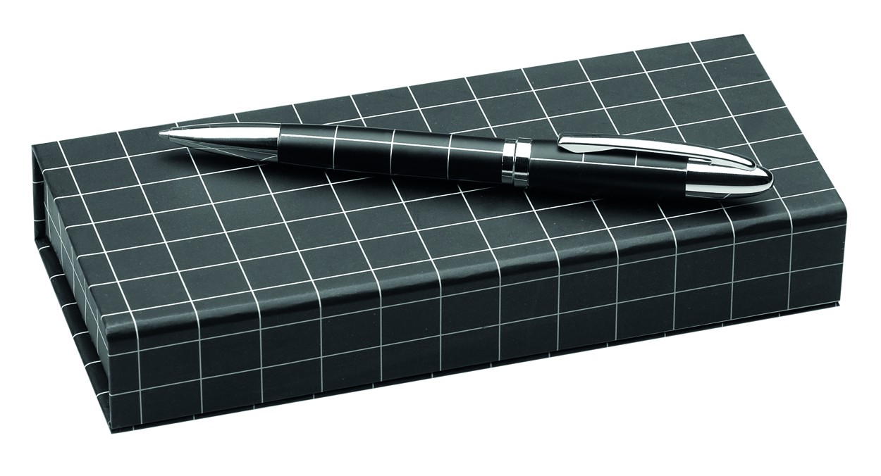 Pix metalic în cutie de cadou de hârtie. Mină albastră.