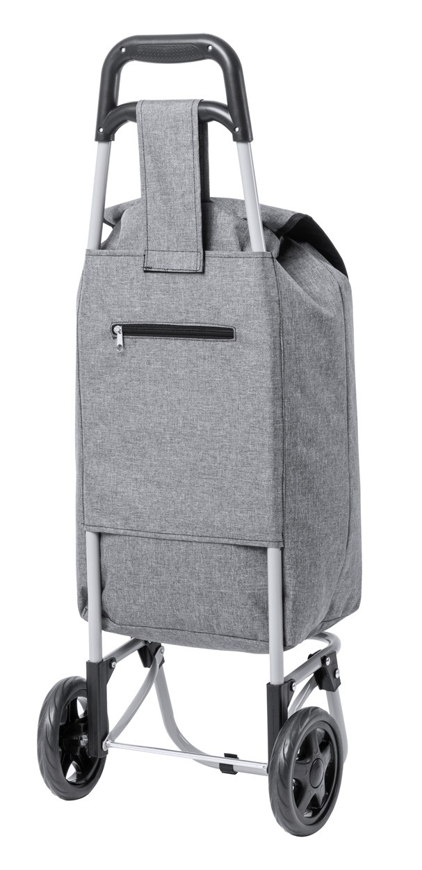 Cărucior de cumpărături pliabil RPET cu cadru metalic, buzunar cu fermoar pe spate, roți și mâner întărite. Cu etichetă distinctivă RPET. Poliester 600D RPET.