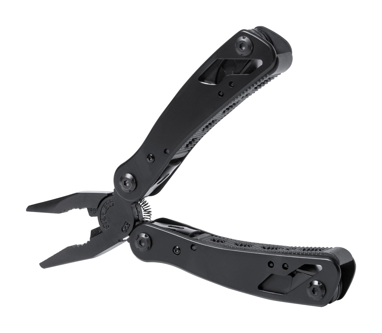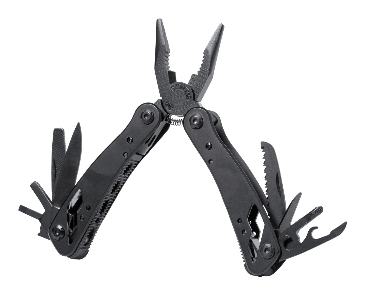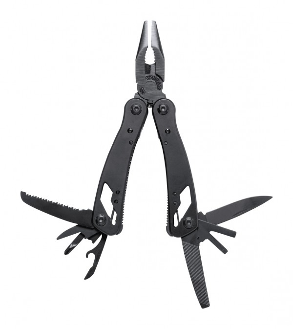 Unealtă multifuncțională, din oțel inoxidabil, cu mâner din aluminiu și 13 funcții.