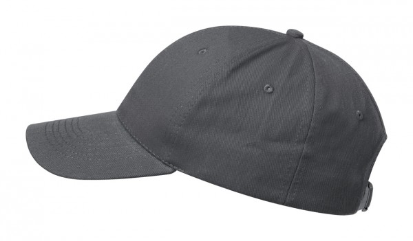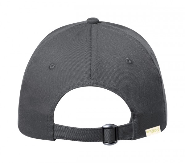 Recycled cotton baseball cap with 6 panels and buckle closure.