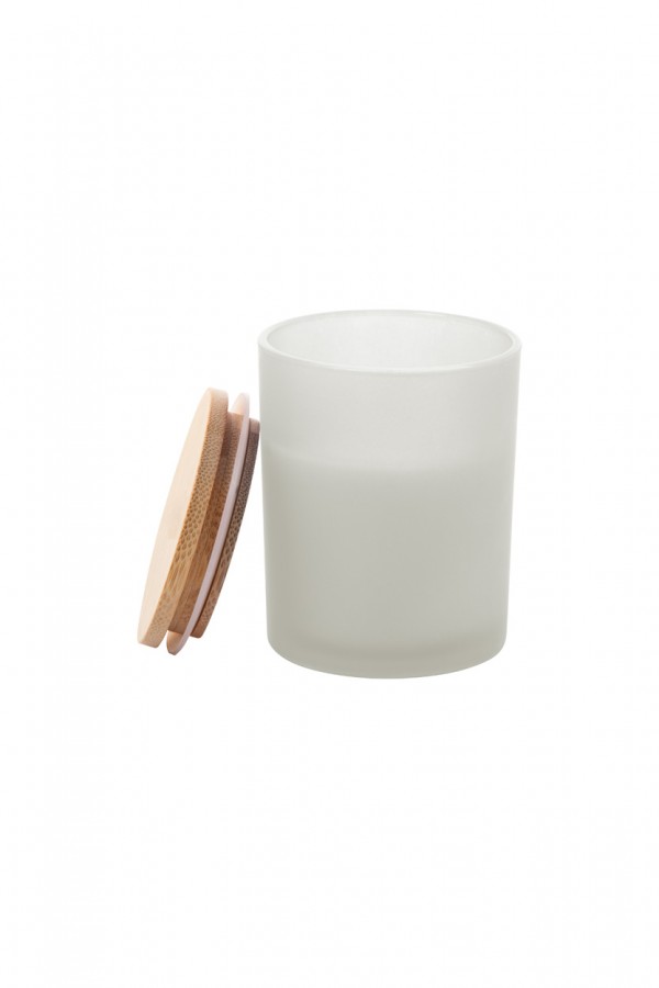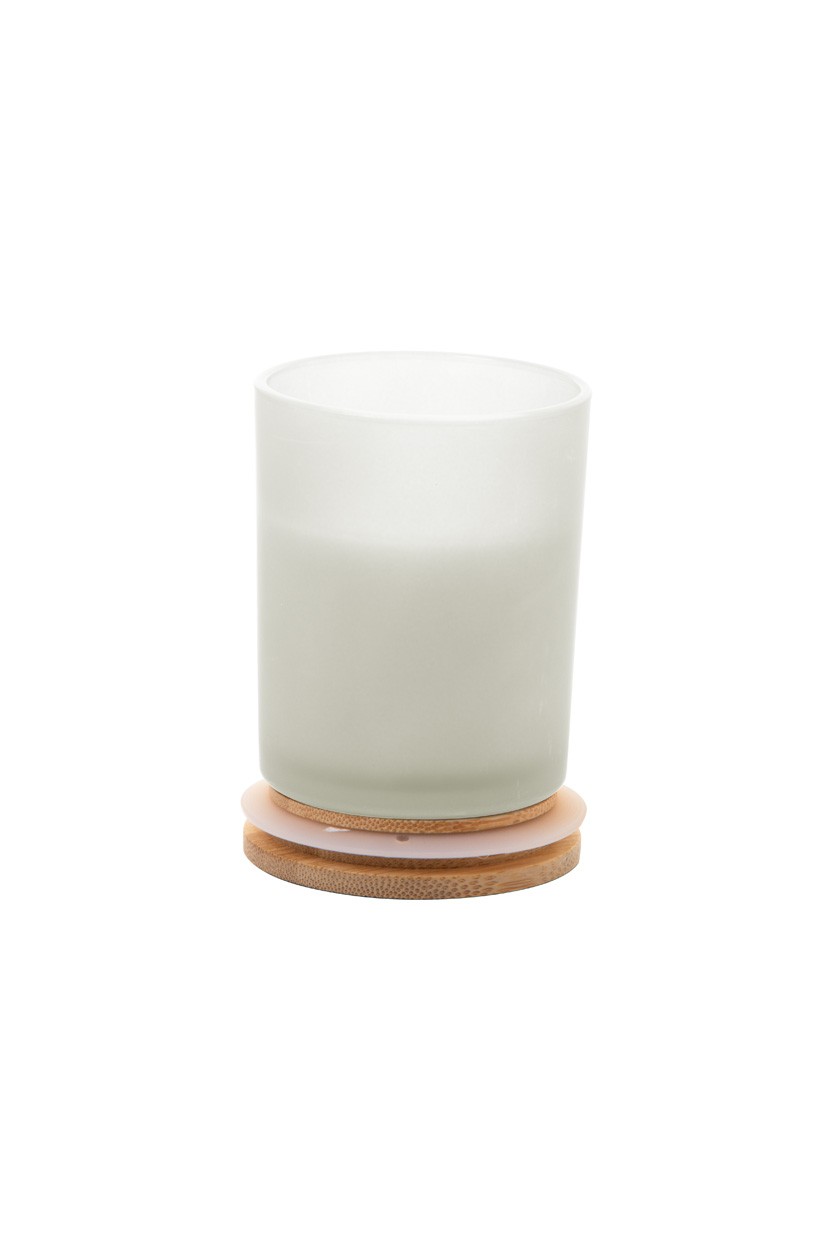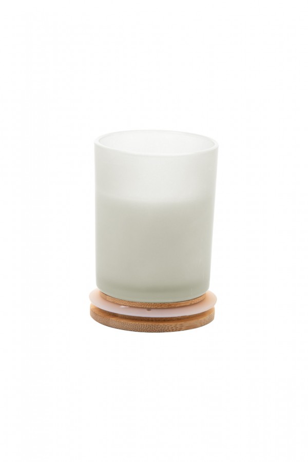 Lumânare de ceară parfumată, pe bază de plante, în suport din sticlă matată, cu capac din bambus. Cu 120 de grame de ceară. În cutie de hârtie kraft.