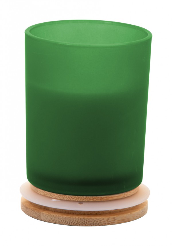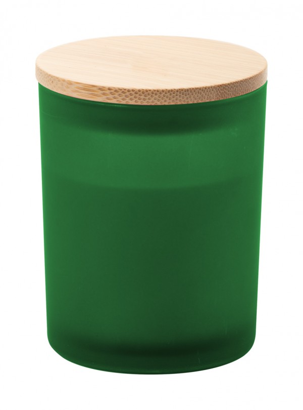 Lumânare de ceară parfumată, pe bază de plante, în suport din sticlă matată, cu capac din bambus. Cu 200 de grame de ceară. În cutie de hârtie kraft.