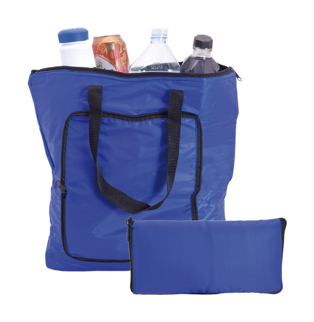 Geantă termoizolantă pliabilă, cu fermoar, din nailon, mânere lungi, căptuşeală aluminiu.