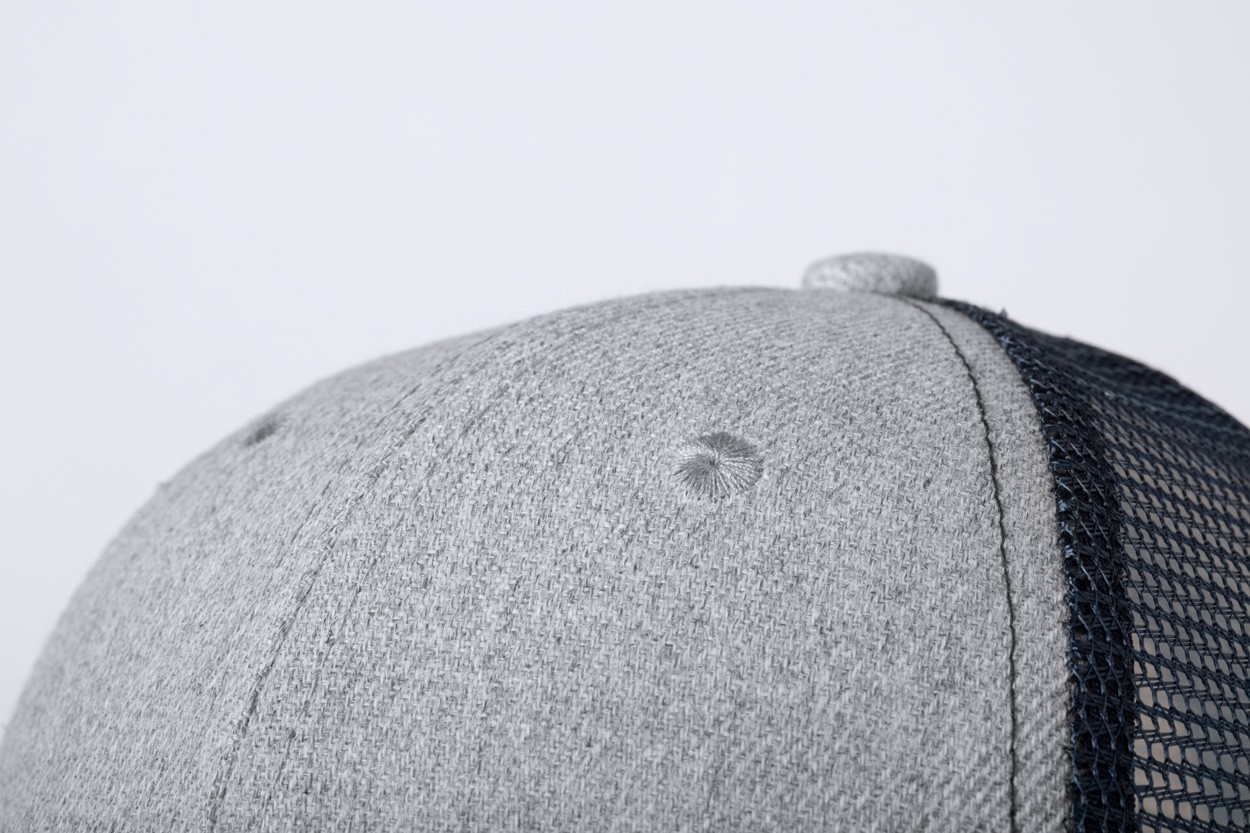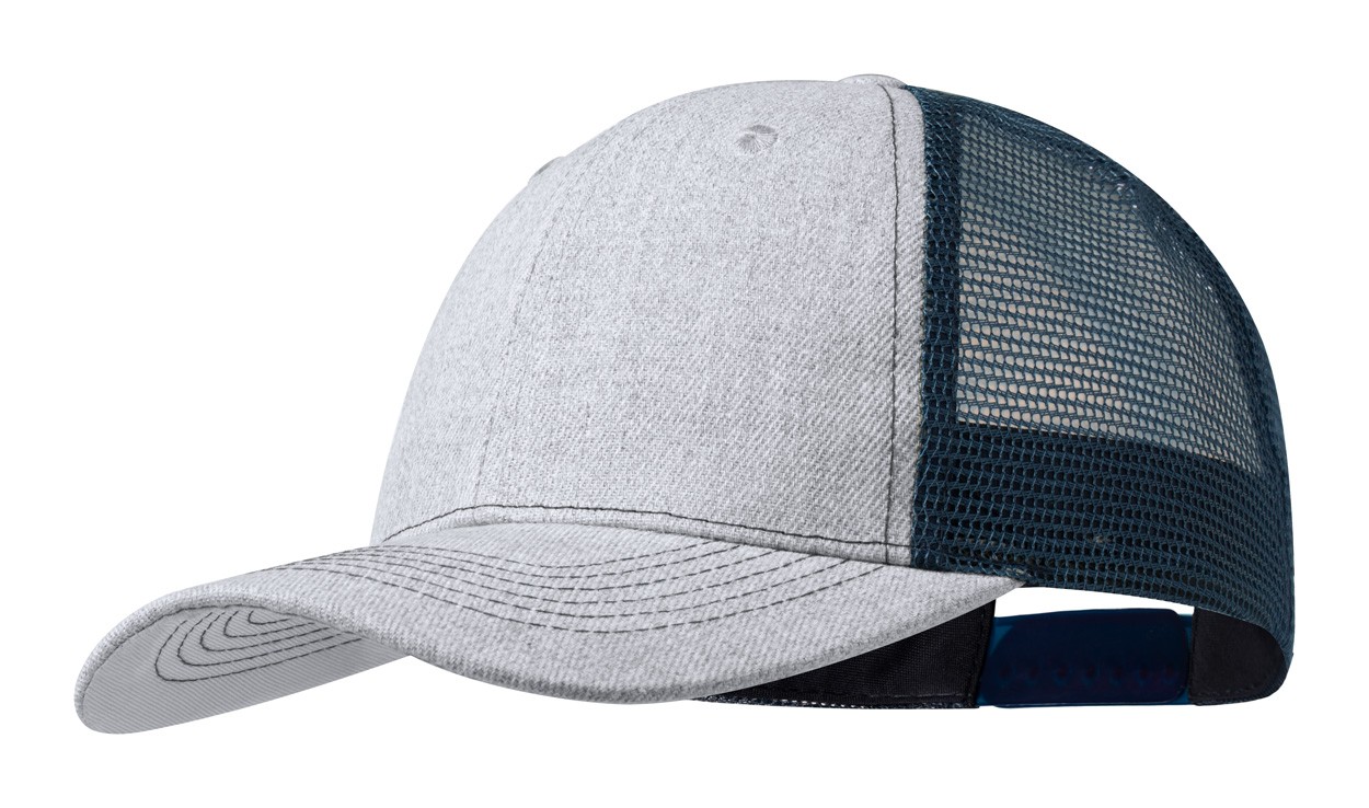 Șapcă de baseball din poliester cu 6 panele, în spate cu plasă colorată, curea de ajustare a mărimii din plastic.